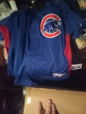Women K. Bryant Jersey Size M-$30 Blue C Cubs Jersey Size M - $30 Kerry Wood Jersey Size M - $40 A. Soriano Jersey Size M - $30 Nike Windbreaker Size M - $10 1970s Light Blue Cubs Jacket Size XL -...