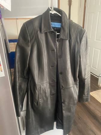 2 leather jackets, take your pick! The long black soft leather coat is a women’s small, it’s slightly used and comes from Kenneth Cole. The white jacket is a medium and is from Wilson Leathers. It’s slightly used. This is a women or man’s medium. Negotiable on the price. Snatch them up now! Text me at show contact info