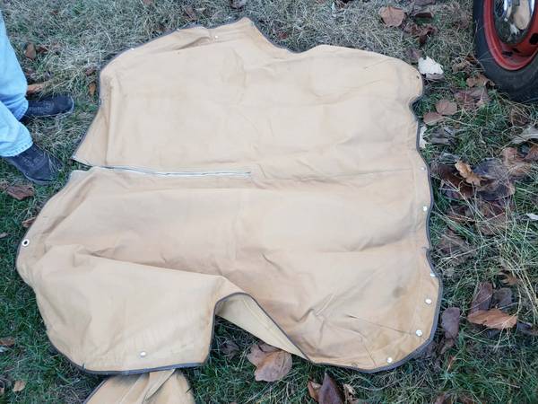 Has a canvas top as well as a tan tonneau cover and snap-in side curtains