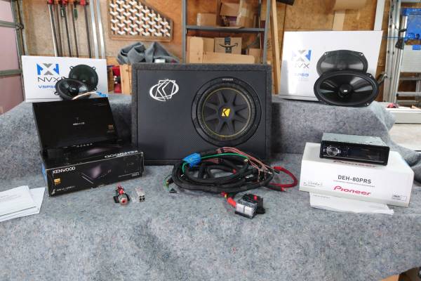 Pioneer deh-80prs has box and manual, no remote.Kenwood X802-5 5 channel amp 50 x4 and 150 x 1. Has box and manual. Nvx vsp69 6x9 speakers. Nvx vsp525 5 1/4 speakers ( speakers have complete box and packing . Kicker 10tc104 4 ohm 10 inch sub in ported box. Will deliver in Springfield area.