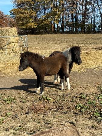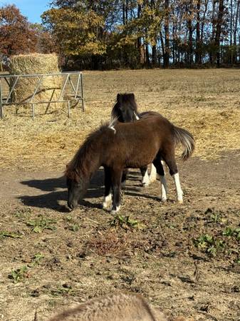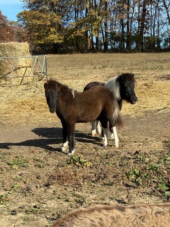 Miniature horse male. He was born spring of 2025. He is ready to go to his new pasture. Mom and dad are both on sight and are 31 inches tall. Please text (217 eight2five five66zero)