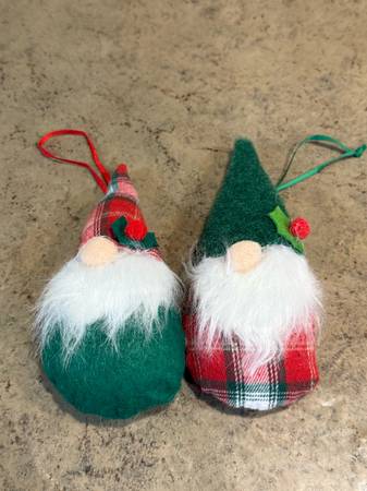 If you love, gnomes, these ornaments are for you! There are 9 total with 2 types of traditional red and green. They are stuffed quite plumply, have nice fluffy beards and can hang with the satin loop ribbon. Selling as a lot of 9 for $7 cash only. No Venmo or other form of payment. FCFS with no holds or delivery. Porch pick up in Sherman Illinois.