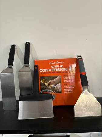 $250/OBO. 1 year old. 28” with shelves. Blackstone griddle, propane or natural gas kit(included), Waterproof Heavy duty cover. 4 Blackstone Heavy duty utensils.