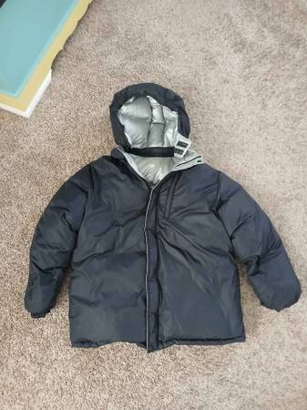 Lands End Womens PUFFER COAT XL Black Silver Hood Very Good Condition
