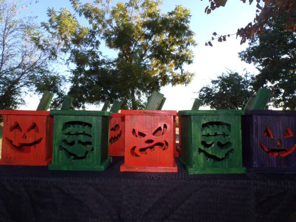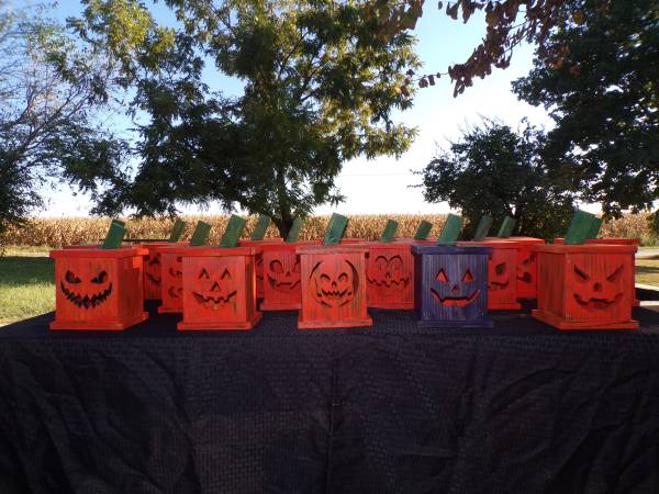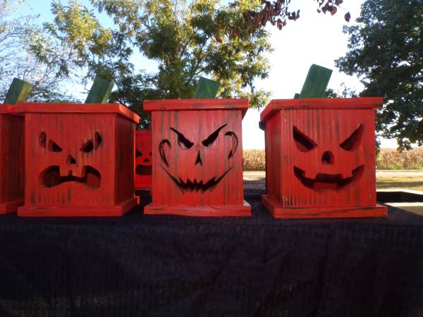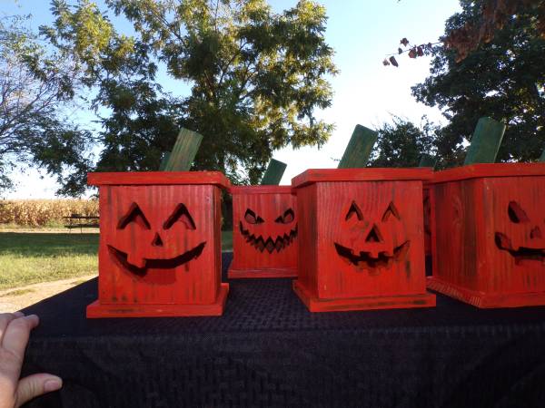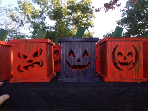 Handcrafted Wooden Solar Jack-o-Lantern Boxes. Great for outdoor decorations $15 each or 2 for $25. Call or text me at