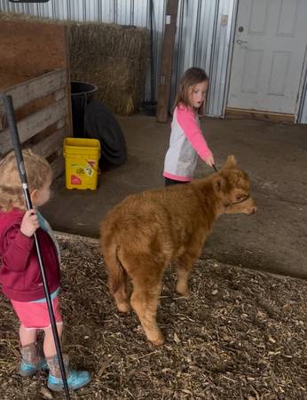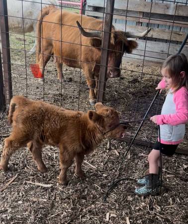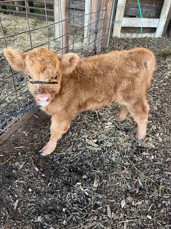 We have 1mini Highland Heifer for sale. Red heifer is really laid back and halter broke will stay really small Price:$6,500 Call or text questions at 217 eight 01-29 seven 3