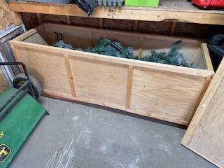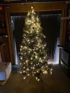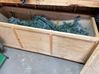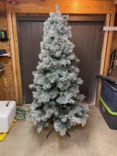 Custom made wooden storage box was built to house a prior 9" tree so it has plenty of room for storage. Pre-lit (white lights) tree also comes with miscellaneous decorative ornaments. Tree comes in...