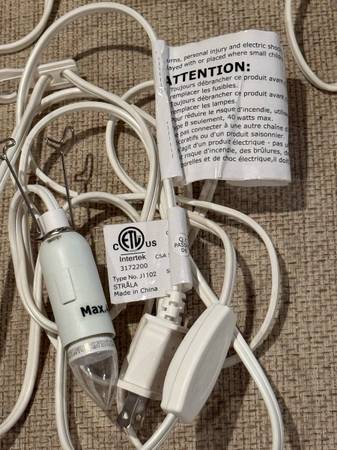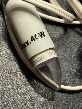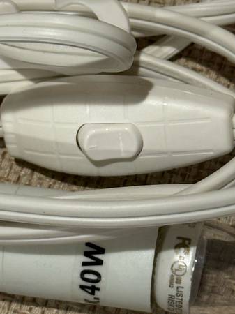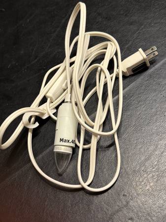 Like new Light Power Cord With Bulb for a ceramic village house, decorative lamp or other crafts. Has an approximately 10 ft. power cord with an in-line on/off switch with a max wattage of 40 watts. From a pet and smoke free home. I have 5 of them at $6 each or take all 5 of them for $25 cash only. No Venmo or other form of payment. FCFS with no holds or delivery. Porch pick up in Sherman Illinois.