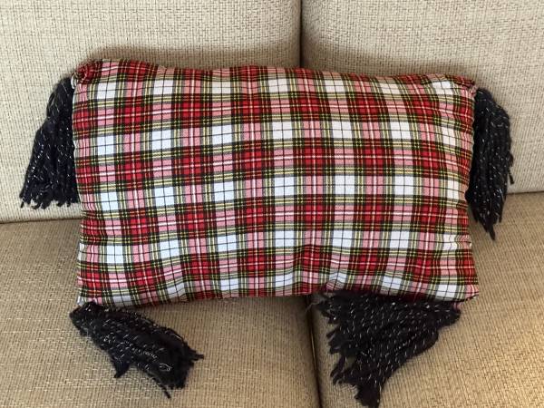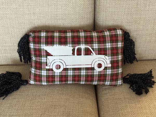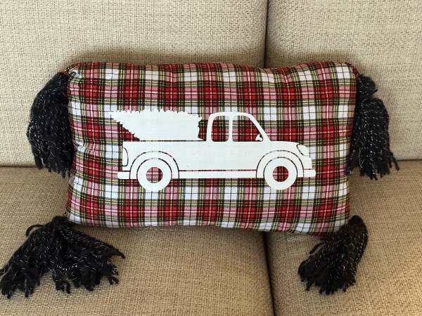 New handmade rectangular Christmas Throw Pillow. This plaid pillow is 16” x 9” x 4.5” thick, has a White truck with Christmas tree and Black tassels on the corners. It is soft and cozy and from a pet and smoke free home $10 cash only. No Venmo or other form of payment. FCFS with no holds or delivery. Porch pick up is in Sherman Illinois.