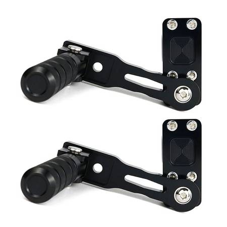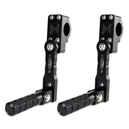 Note: These pegs must be mounted to tubing(Crashbars, etc.) which set perpendicular to the ground so that the pegs open parallel to the ground. They can be adjusted & mounted to various circular positions(see pics).