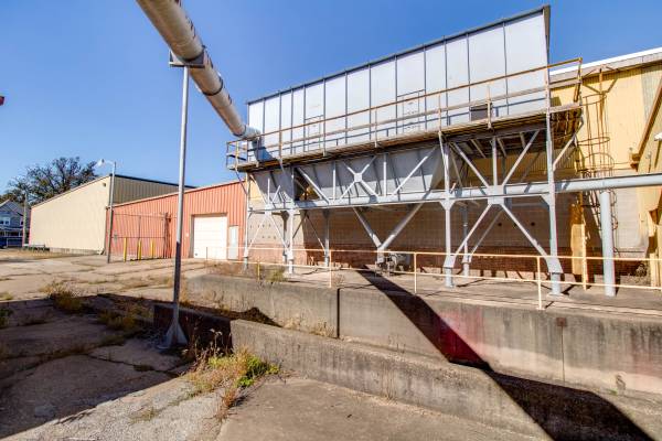This property features an extensive lot with gravel and concrete parking areas, along with partial chain link fencing. The interior offers steel beam construction with excellent ceiling height and abundant natural light. Concrete flooring runs throughout, providing a durable surface suitable for a variety of uses. The large open spaces inside are ideal for storage, workshop areas, or potential reconfiguration to meet specific needs. Additional amenities include a truck-level loading dock for convenient deliveries and a fenced interior area that could serve as secure storage or equipment containment. Existing hoppers and material handling equipment remain on-site, though their condition is unknown.