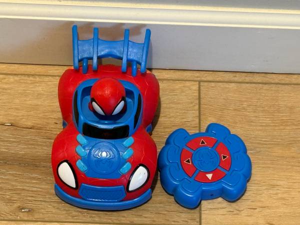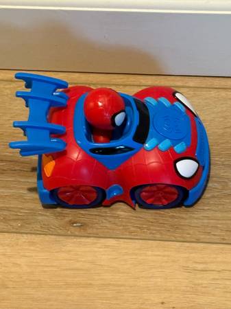 Like new Jazwares Marvel Spidey And His Amazing Friends remote control Web Crawler toy. The Red and Blue car is 7” L. DC 4.5” W x 4.5” T and has a 4 function remote with forward, backwards, left and right. Lots of fun for your little Spidey fan! Requires 2 “AAA” batteries for the remote control and 3 “AA” batteries for the car. Batteries ARE NOT included!! Works fine, is clean and from a pet and smoke free home. $15 cash only. No Venmo or other form of payment. FCFS with no holds. Only Porch pick up in Sherman Illinois.