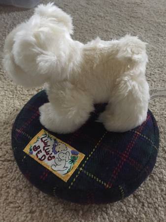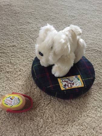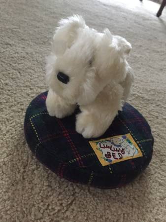 Meet Lulu, Hoppy VanderHare and Muffy VanderBear's dog. He looks new but no longer has his bow, the only reason he's listed as "excellent" vs. "like new". He also comes with a cozy dog bed and a brush to keep fur in check. Both are like new. Bring home a friend for your VanderBear!