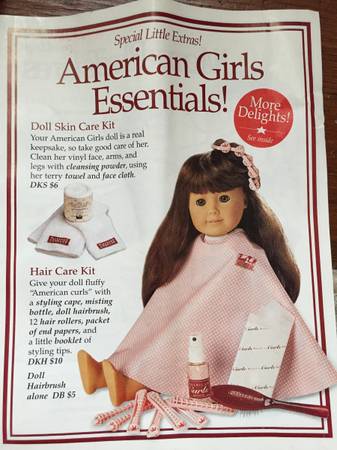 Take your American Girl to the salon! This is a well-loved but barely worn accessory set ready for a new home. Everything is in excellent condition with minimal wear around the label on the towels. This has been in a non-smoking house, and comes with a towel, a wash cloth, a brush, and a salon cover.